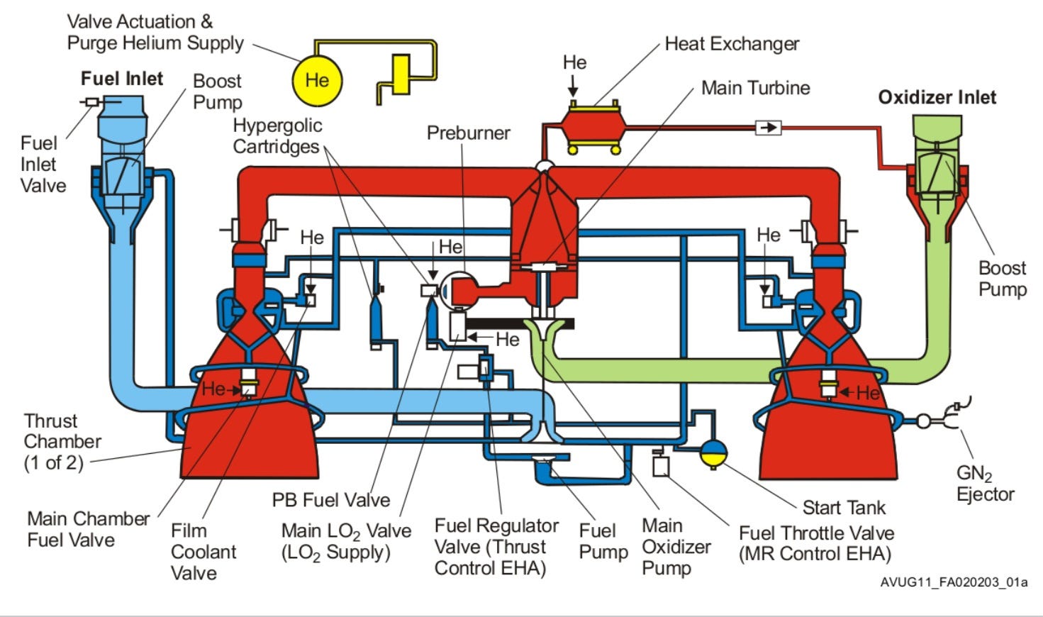 American staged combustion engines, by contrast, favoured fuel rich preburners, the most famous of which were the massive RS-25 Space Shuttle main engines.