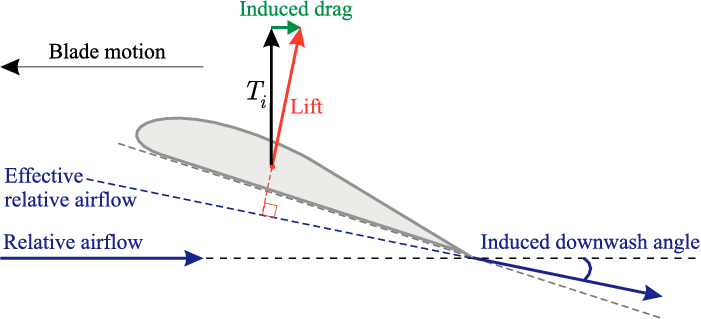 And because the lift produced by a wing acts perpendicular to the direction of the airflow that means, if you sketch it out in a side view, that a component of this lift is now acting backwards!