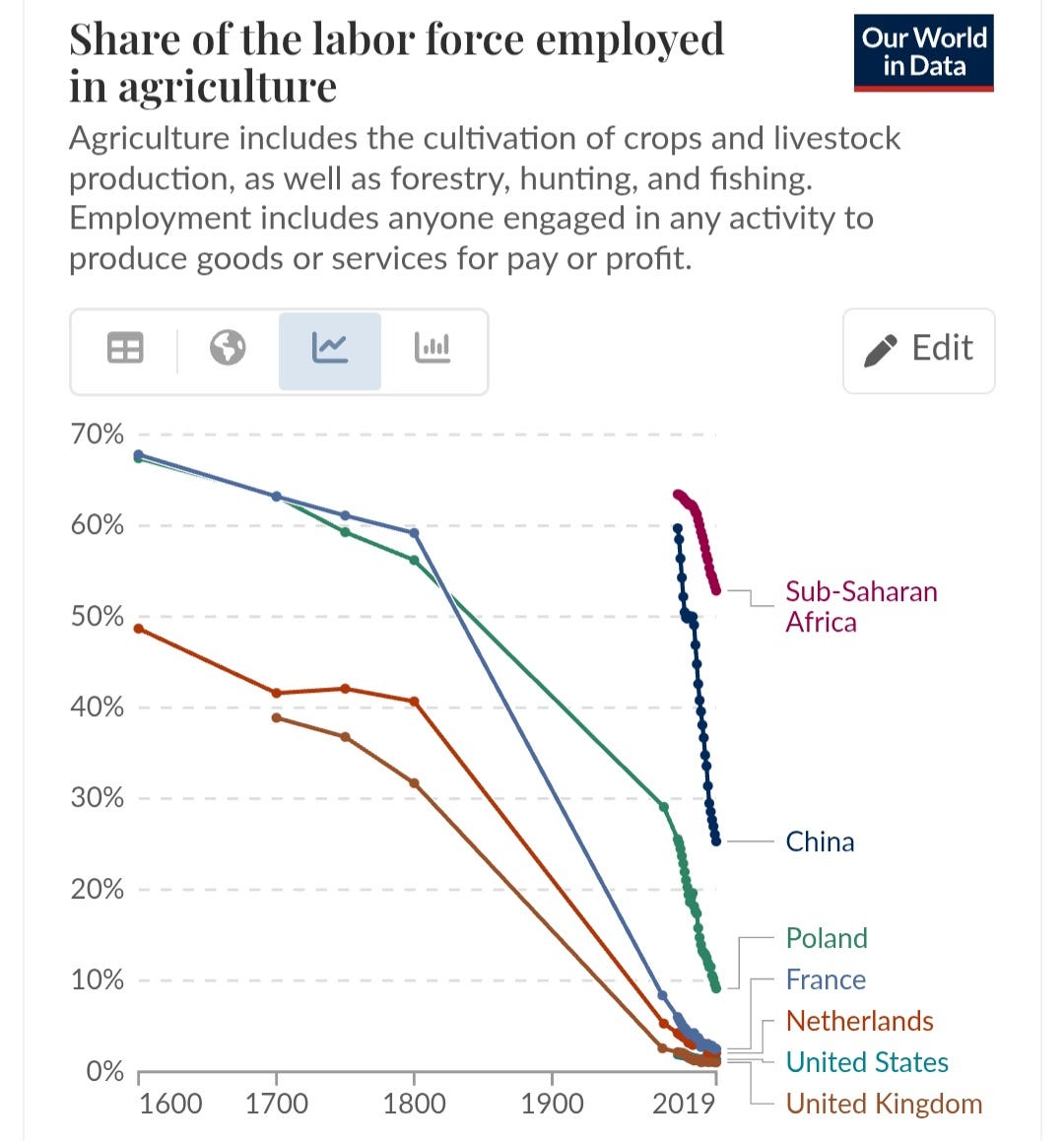 For most of human history we were chained to the land, with the vast majority toiling in fields to support a tiny productive urban elite. It wasn’t just the combine harvester that ended this, but a cornucopia of advancements that really took off from the 17th century onwards, with selective breeding, four-field tillage, early mechanisation and eventually artificial fertilisers in the 20th century. It's the original productivity drive, the social revolution that predated all others and gave us the foundations of our modern world.