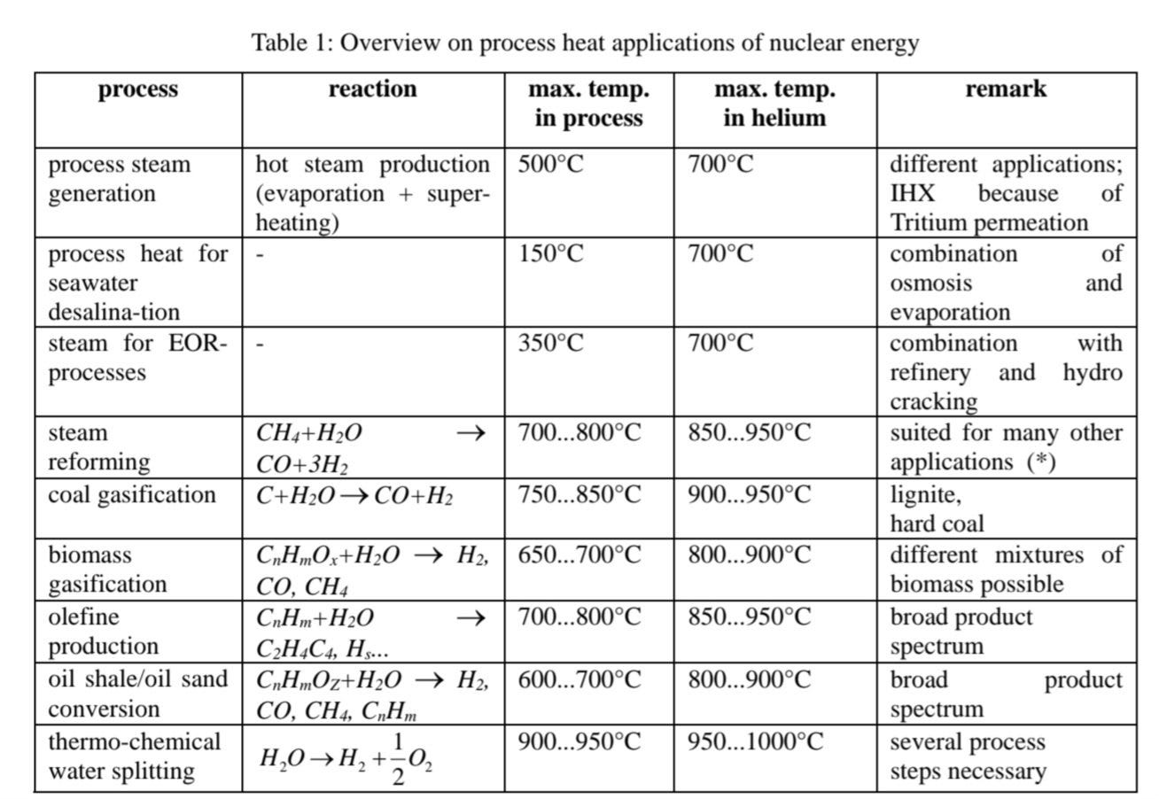 And that's just boring old cooling water from a light water reactor. If you make the export temperature high enough, then it opens up all kinds of industrially useful processes! Chemical industries, paper production, oil refining, brewing, metallurgy, pharmaceuticals… heat export is the big untapped gold mine in every nuclear reactor, the higher the temperature the better.