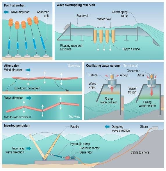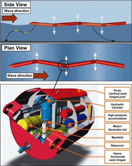 But on the other hand, waves are always available and because they build slowly out at sea you can get a pretty decent forecast of the sea state. Moreover, unlike wimpy wind or solar, wave power is concentrated!