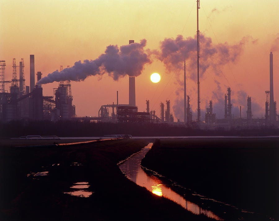 When we glimpse an oil refinery, perhaps in passing by car or plane, perhaps on TV or a Google search, we blank out the sprawling chaos and dragon-breath exhalation. All we know is that here is something ugly, so we tune it out.