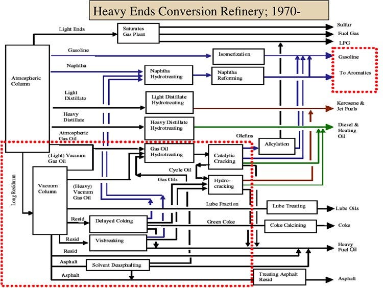 The Heavy Ends Conversion Refinery was born from the oil shock, when the constraint on supplies of light crude, plus spiking prices, made unconventional refining processes valuable.