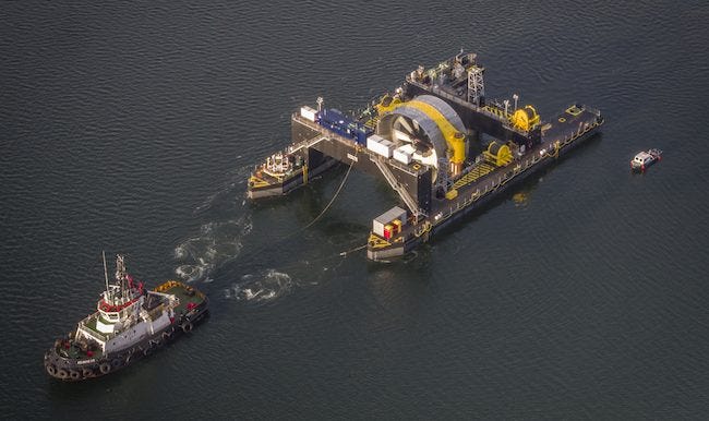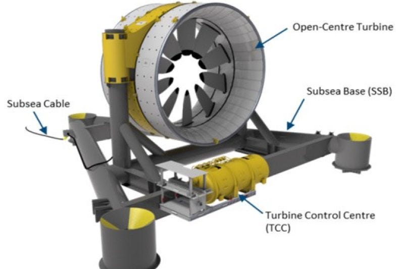 The most obviously “up for that” companies right now are SAE Renewables, whose Meygen project off the coast of Scotland is the largest in the world, and its primary turbine supplier Proteus Marine Renewables: The Phase 1 pilot is fully operational, with four deployed turbines and 6MW of capacity. Phase 2 contracts have been awarded for a further 59MW over the next few years, and a final phase build-out of 398MW is contingent on the success of that. With each turbine and each new MW of capacity, learner effects strengthen, automation and redesign becomes more cost effective, and the industrial flywheel spins up faster. It's taken a long time to get to this point, but Godspeed to Meygen.