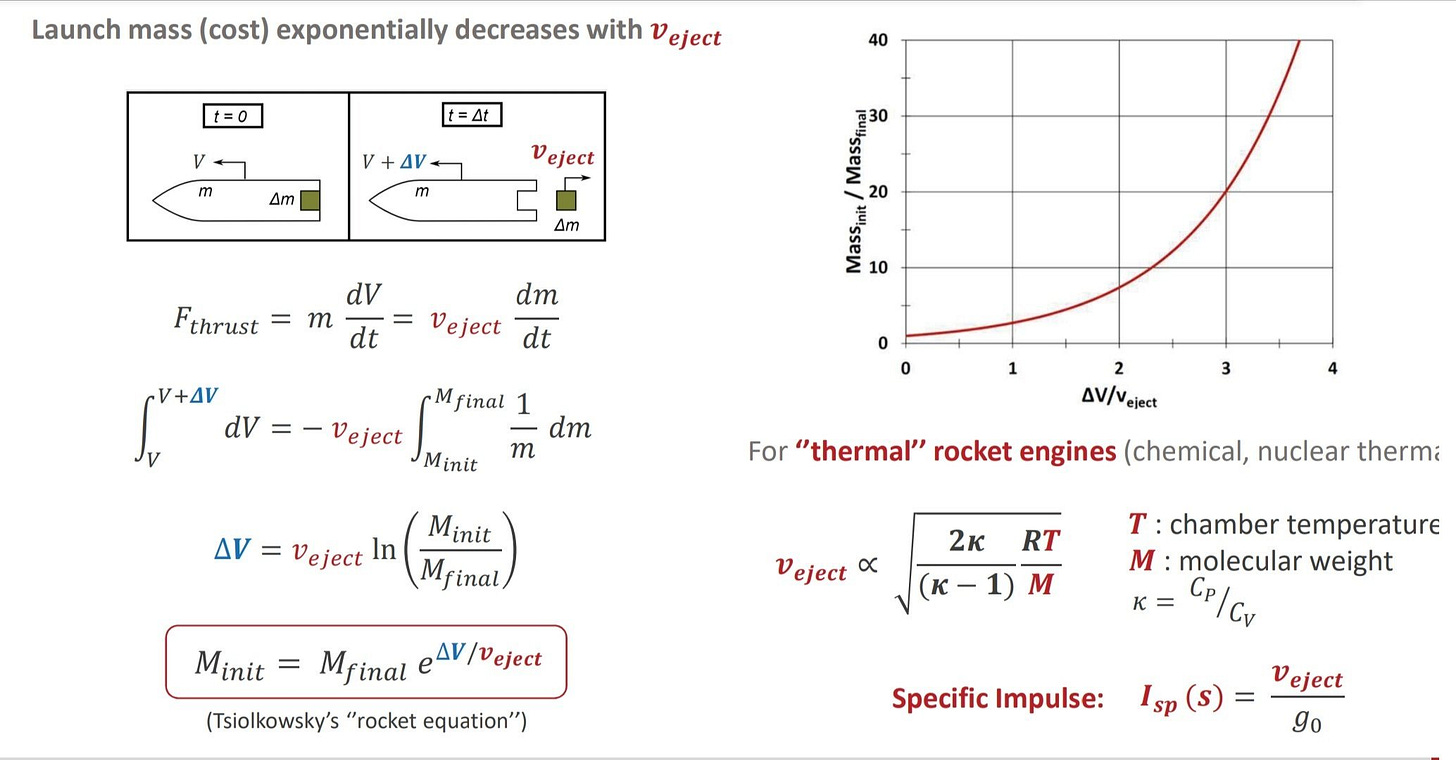 Now, there remain problems with the nuclear salt-water rocket, and obviously one of them is that it’s just flat-out bare-bottomed bonkers. For another, nobody knows how to create a rocket nozzle that can withstand atomic fury for any sustained period. In principle most of the actual fission happens outside the rocket itself if you do things right and eject the propellant fast enough, but the further back it happens, the lower your efficiency goes. You could also, of course, use film cooling on your nozzle surfaces, much as we do with chemical rockets today using liquid oxygen (perhaps with water in this case), but this strains credulity if you’re trying to cool a surface against something just one step away from a nuclear detonation. Hmm.