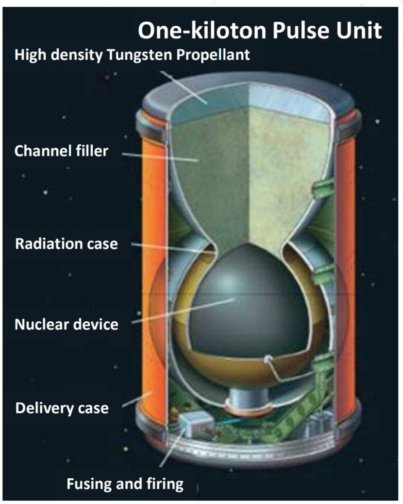 Well the ‘pulse’ is obvious enough, which is a propulsion system that delivers in a discontinuous series of pulses rather than as a continuous exhaust stream. The ‘nuclear’ descriptor should, by now, become obvious.
