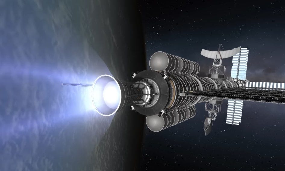 Proposed by aerospace engineering and terraforming enthusiast Robert Zubrin, the nuclear salt-water rocket, though technologically at an earlier stage of development than Orion, actually does have the theoretical ability to function as a workable interstellar propulsion system, and unlike the (saner and more sustainable) alternatives later in this article doesn't require the resources of an industrialised solar system to pull it off.